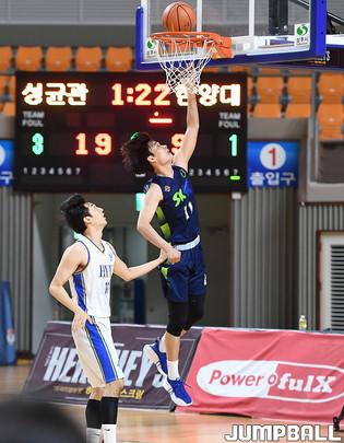 27일 경북 상주실내체육관에서 열린 제37회 MBC배 전국대학농구 상주대회 준결승전으로 성균관대와 한양대의 경기, 성균관대 선수들이 압박수비를 펼치고 있다.