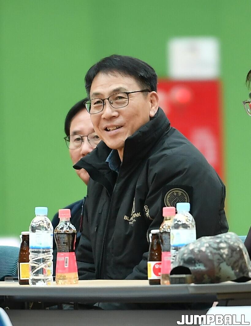 [점프볼=이천/정병민 인터넷기자] 진규상 국군체육부대장이 상무 선수단 경기를 보고자 이천을 찾았다.