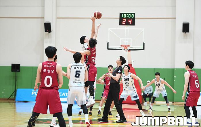 [점프볼=이천/문복주 기자] 26일 이천 LG챔피언스파크에서 열린 2020-2021 KBL D리그 2차대회 창원 LG와 전주 KCC의 경기, KCC 박세진이 경기시작 점프볼을 선점하고 있다.