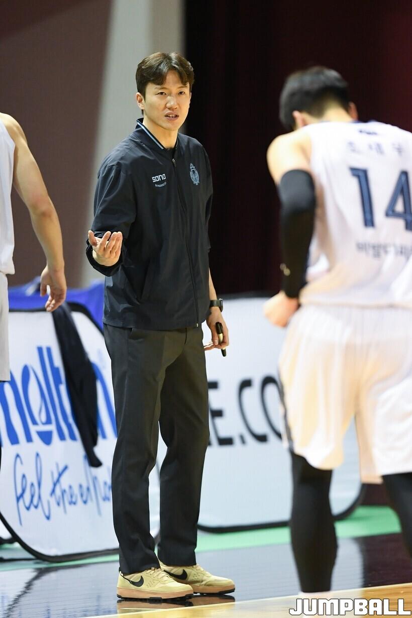 [점프볼=용인/유용우 기자] 23일 경희대 국제캠퍼스 선승관에서 열린 2025-2026 KBL D리그 울산 현대모비스와 원주 DB의 경기, 소노 박찬희 코치가 작전을 지시하고 있다.