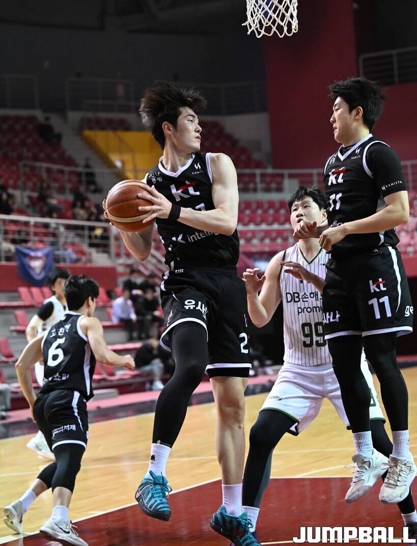 KT는 이두원이 24점 15리바운드로 승리에 앞장섰고, 박성재(14점 4리바운드 2어시스트)와 고찬혁(12점 5리바운드)이 두 자리 수 득점에 성공했다. DB는 백승엽(16점 4리바운드 3어시스트), 이윤수(13점 17리바운드)가 분전했다.