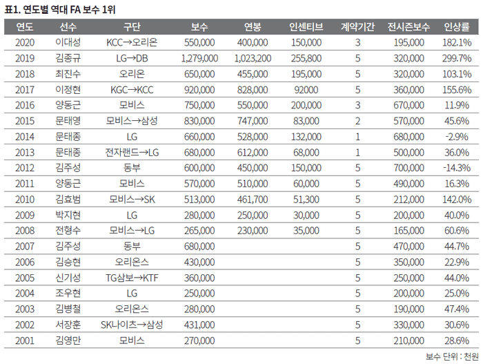 역대 FA 결과 요약
