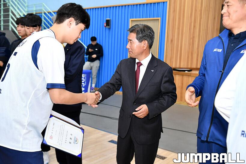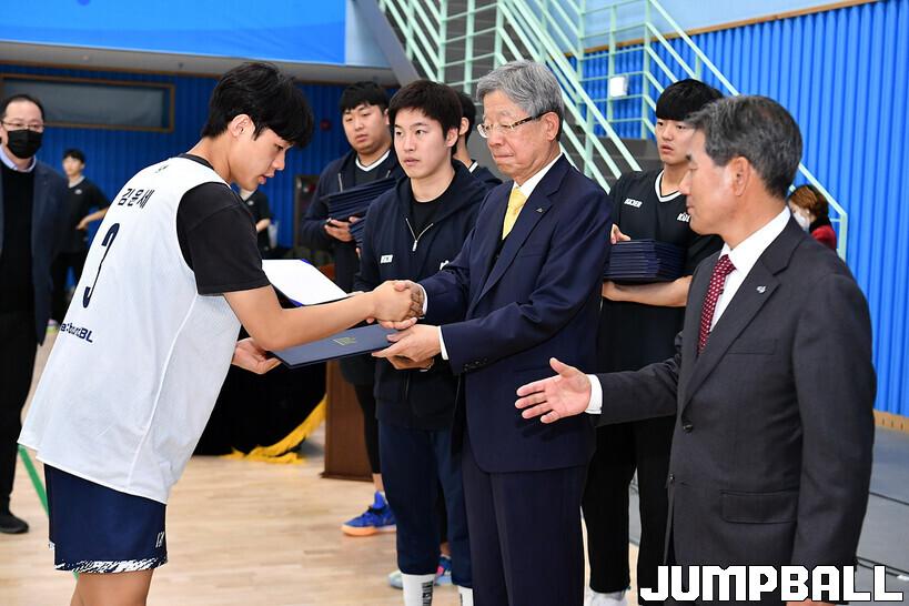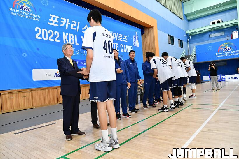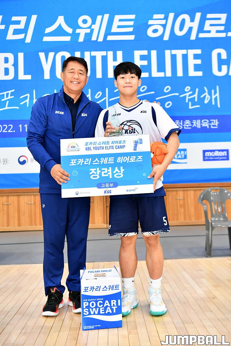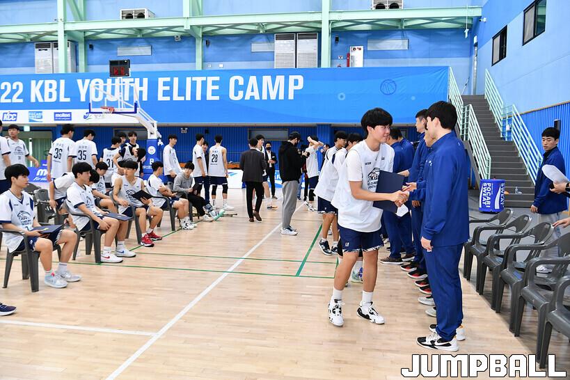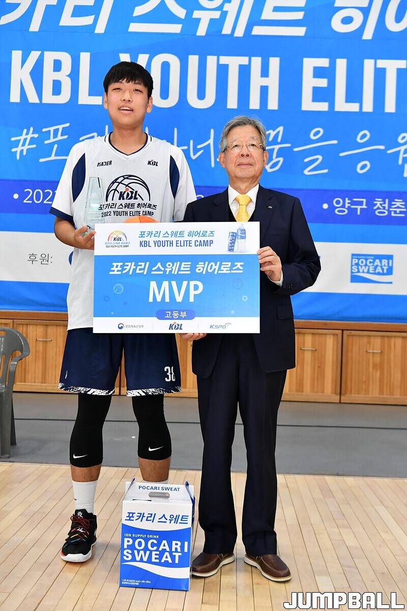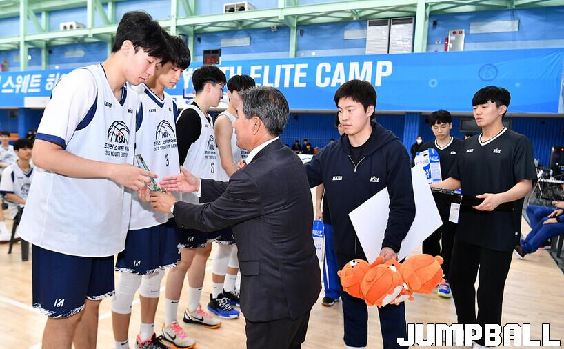 10일 강원도 양구 청춘체육관에서 펼쳐진 2022 KBL 유스 엘리트 캠프 고등부 4일차 일정. 지난 7일 본 캠프에 입소했던 40명의 고등부 선수들은 4개 팀으로 나뉘어 파트별 트레이닝을 실시했고, 3박 4일 동안 각 코치들과의 트레이닝은 물론 대회를 거쳐 우승자를 가려냈다. 그 결과 4일차 고등부의 일정이 모두 끝났을 때 가장 빛나는 별로 선정된 MVP는 배재고의 서지우였다.