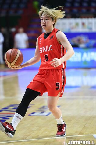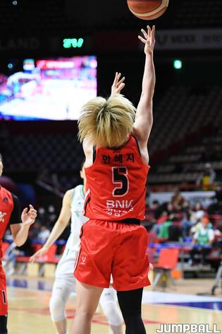 [점프볼=부산/박상혁 기자] 25일 부산사직체육관에서 열린 우리은행 우리WON 2023-2024 여자프로농구 부산 BNK썸과 부천 하나원큐의 경기, BNK썸 김지은이 3점슛을 시도하고 있다.
