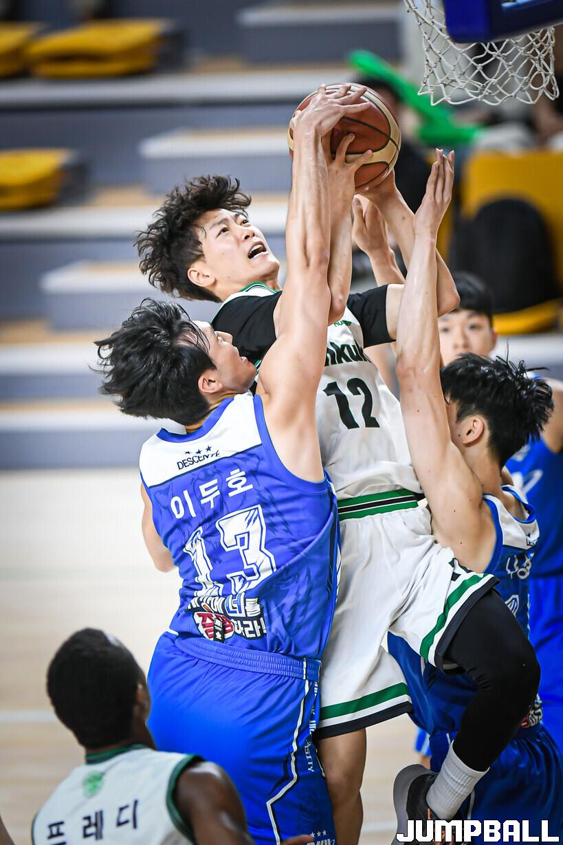 12일 상주체육관 신관에서 열린 제39회 MBC배 전국대학농구 상주대회 건국대와 단국대 경기, 건국대 조환희가 골밑에서 슛을 시도하고 있다.