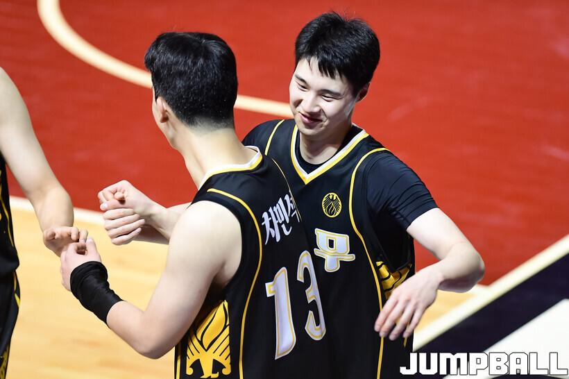 이날 3쿼터 이우석의 패스를 받아 신민석이 3점슛을 성공시키는 장면도 나왔다. 코트 안에서의 호흡에 대해 신민석은 "서로 보기만 해도 잘 맞는 부분이 있는 것 같다. 모든 게 잘 맞는다고 생각한다. 코트 안에서도 지금보다 좀 더 잘 맞았으면 좋겠다(웃음)"라고 이야기했다.
