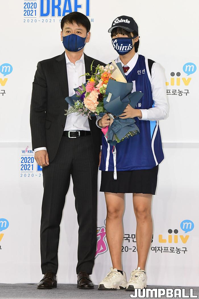 [점프볼=청주/박상혁 기자] 4일 청주실내체육관에서 열린 2020-2021 WKBL 신입선수 선발회, 1라운드 3순위로 신한은행 정상일 감독이 삼천포여고 이다연을 지명했다.