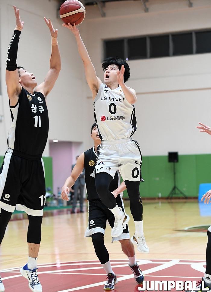 [점프볼=이천/문복주 기자] 31일 이천 LG챔피언스파크 실내농구장에서 열린 2020-2021 KBL D리그 플레이오프 준결승 상무와 LG의 경기, LG 윤원상이 골밑을 파고들어 레이업을 시도하고 있다.