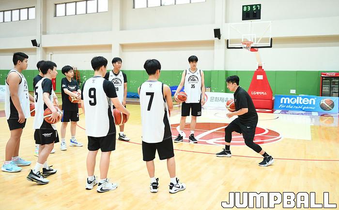 [점프볼=이천/문복주 기자] 25일 경기도 이천에 위치한 LG챔피언스파크에서 열린 2020 KBL 연고선수/장신선수 유소년 캠프. 현장은 오전부터 총 35명의 유소년 선수들이 조상현,김현중,김승찬,권용웅,김동욱 코치들의 지도 아래 스킬 트레이닝이 여념이 없었다.