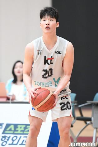 [점프볼=이천/박상혁 기자] 7일 이천 LG챔피언스파크에서 열린 2024-2025 KBL D리그 상무와 수원 KT의 경기, 상무 김준환이 3점슛을 성공시킨 후 백코트 하고 있다.