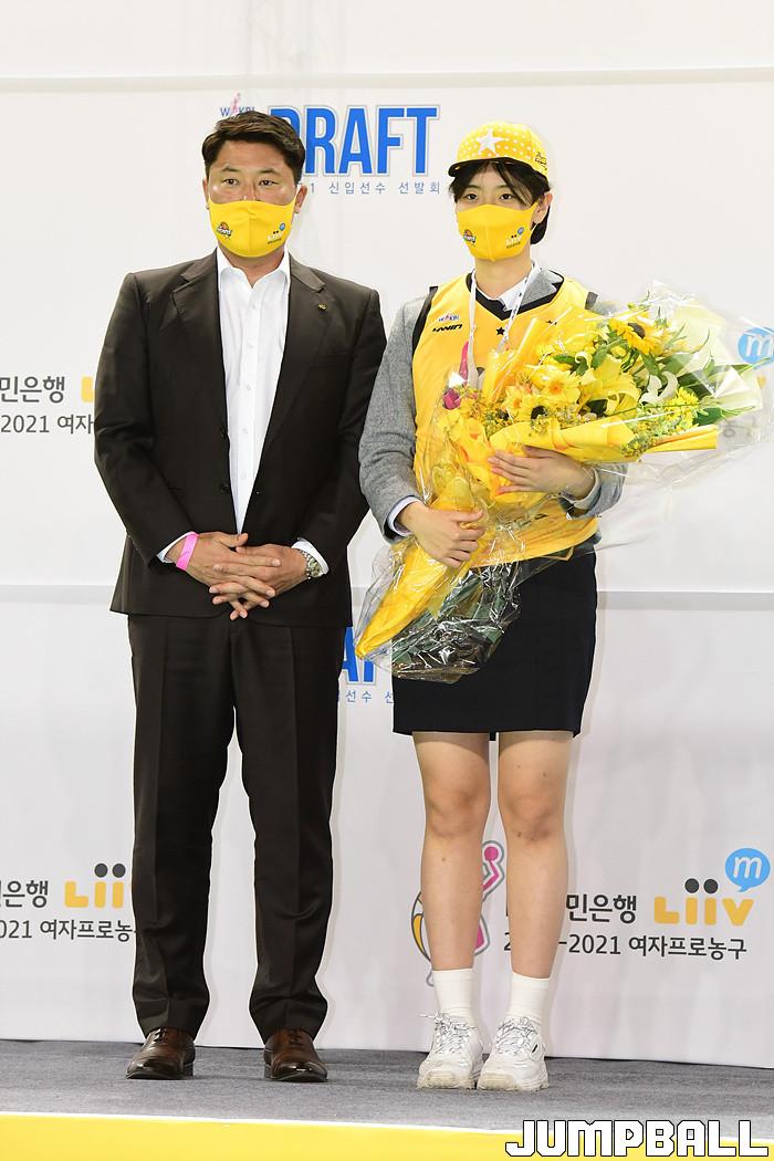 [점프볼=청주/박상혁 기자] 4일 청주실내체육관에서 열린 2020-2021 WKBL 신입선수 선발회, 화봉고 조수민이 1라운드 4순위로 KB스타즈에 지명되었다.