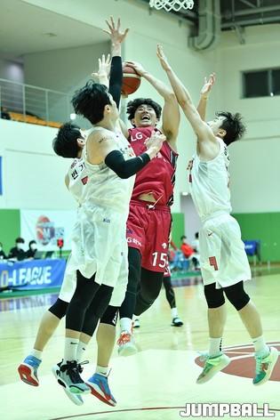 [점프볼=이천/유용우 기자] 03일 이천 LG 챔피언스파크에서 열린 2020-2021 KBL D-리그 2차 대회 SK와 LG의 경기, LG 윤원상이 돌파하고 있다.