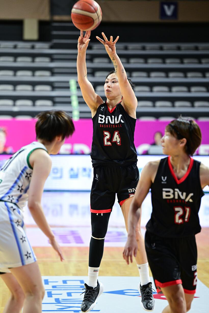 부산 BNK썸은 6일 아산이순신체육관에서 열린 2024 우리은행 박신자컵 A조 예선 히타치 하이테크 쿠거스와의 경기에서 82-55로 승리했다.