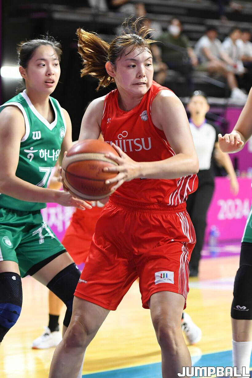 후지쯔는 4쿼터 초반 역전을 허용한 것도 잠시, 이내 주도권을 되찾았다. 하나은행의 3점슛이 침묵한 사이 조슈아가 골밑을 공략했고, 미야시타 키호는 하나은행의 외곽 로테이션이 흔들린 틈을 놓치지 않았다. 아카기 리호가 플로터까지 선보이며 하나은행에 찬물을 끼얹은 후지쯔는 4쿼터 막판 10점 안팎의 리드를 유지한 끝에 경기를 매듭지었다.