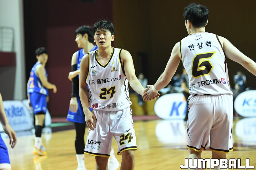 LG는 1쿼터를 21-18, 근소한 차이로 마쳤다. 잡은 리드는 경기 끝까지 이어졌고, 그 중심에는 김선우의 압박 수비가 있었다. 1쿼터 후반 교체로 코트를 밟아 본인의 수비 강점을 유감없이 뽐냈다.