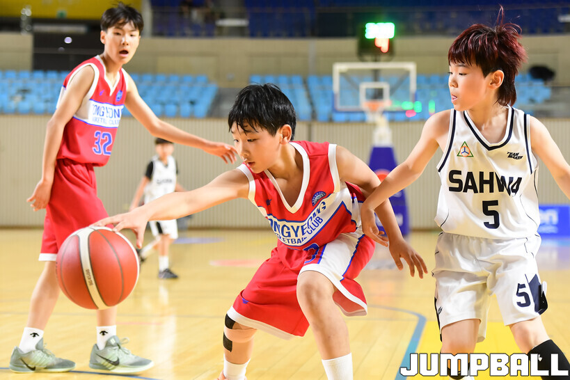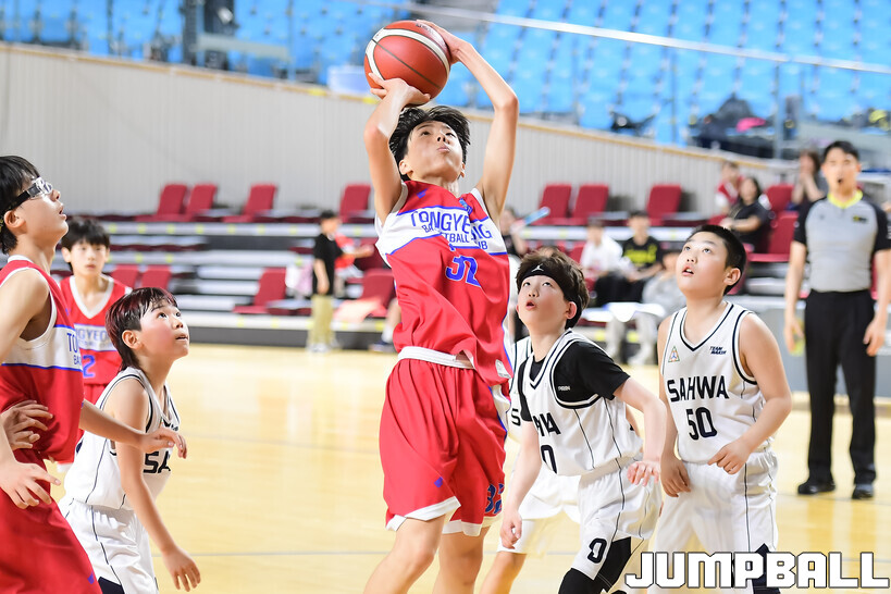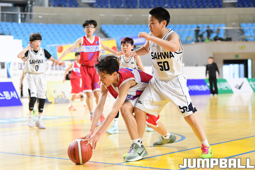 [점프볼=김천/박상혁 기자] 15일 김천체육관에서 열린 아이에스동서 제25회 협회장배 전국초등농구대회 2일차 사화초와 통영스포츠클럽 예선 경기, 통영스포츠클럽이 사화초에 56-35로 승리했다.