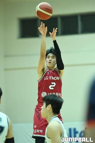 29일 이천에 위치한 LG챔피언스파크에서 열린 2021-2022 KBL D-리그 LG와 KCC의 경기, LG 정해원이 속공 레이업을 올리고 있다.