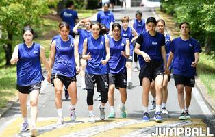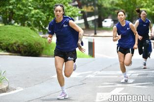 신한은행은 19일 경주 동국대체육관에서 웨이트 트레이닝과 마무리 운동으로 오르막 달리기을 진행 했다.