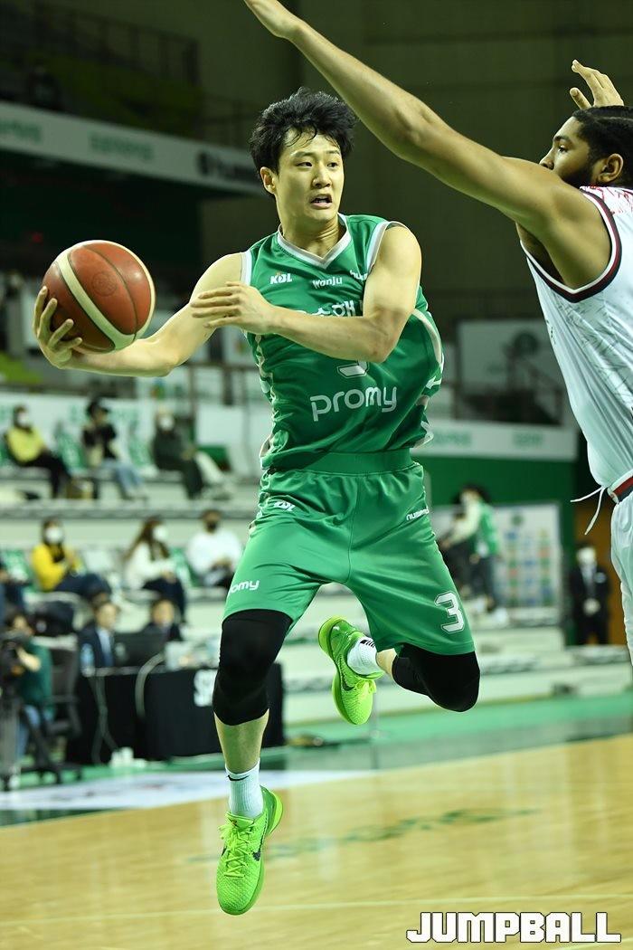 [점프볼=원주/유용우 기자] 7일 원주 종합체육관에서 열린 2020-2021 현대모비스 프로농구 원주 DB와 고양 오리온의 경기, DB 허웅이 골밑을 파고 들며 패스를 하고 있다.