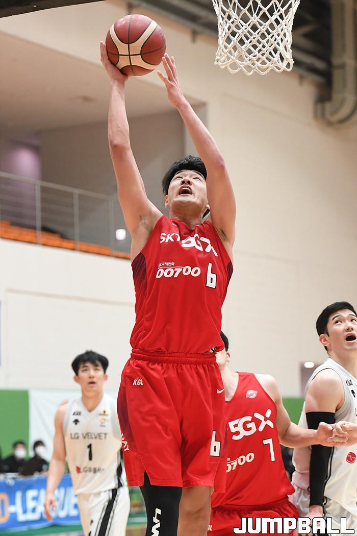 [점프볼=이천/박상혁 기자] 11일 이천 LG챔피언스파크에서 열린 2020-2021 현대모비스 프로농구 KBL 가리그 2차대회 서울 SK와 창원 LG의 준결승 경기, SK 장문호가 골밑슛을 시도하고 있다.
