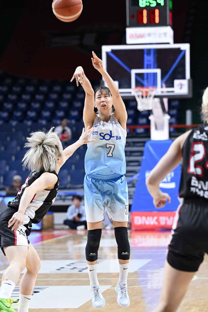 신한은행은 BNK와 앞선 5차례 맞대결에서 평균 3점슛 4개를 성공했다. BNK에게는 7.4개를 얻어맞았다.