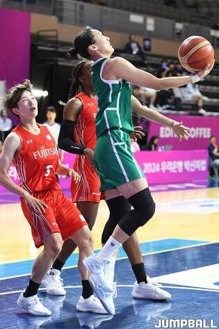 [점프볼=아산/박상혁 기자] 3일 아산 이순신체육관에서 열린 2024 우리은행 박신자컵 부천 하나은행과 후지쯔 레드웨이브의 경기, 하나은행 김정은이 패턴을 지시하고 있다.