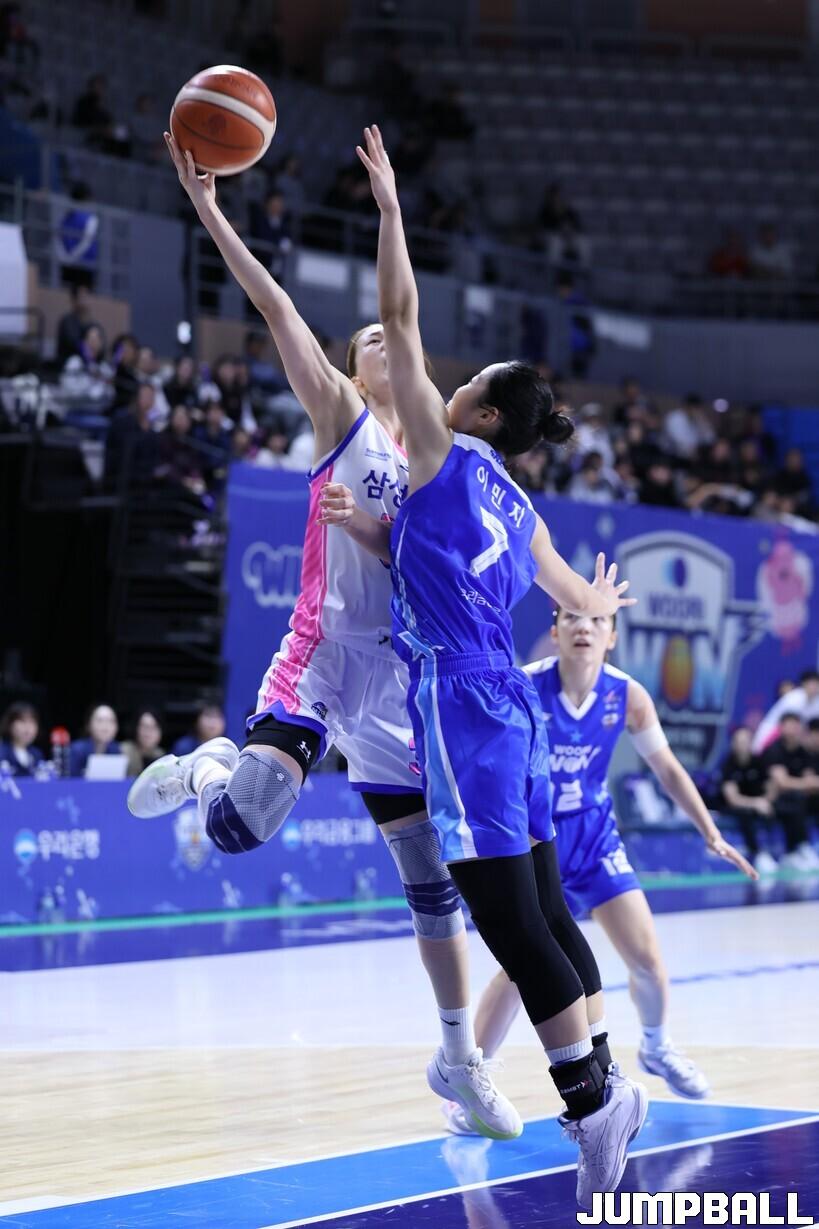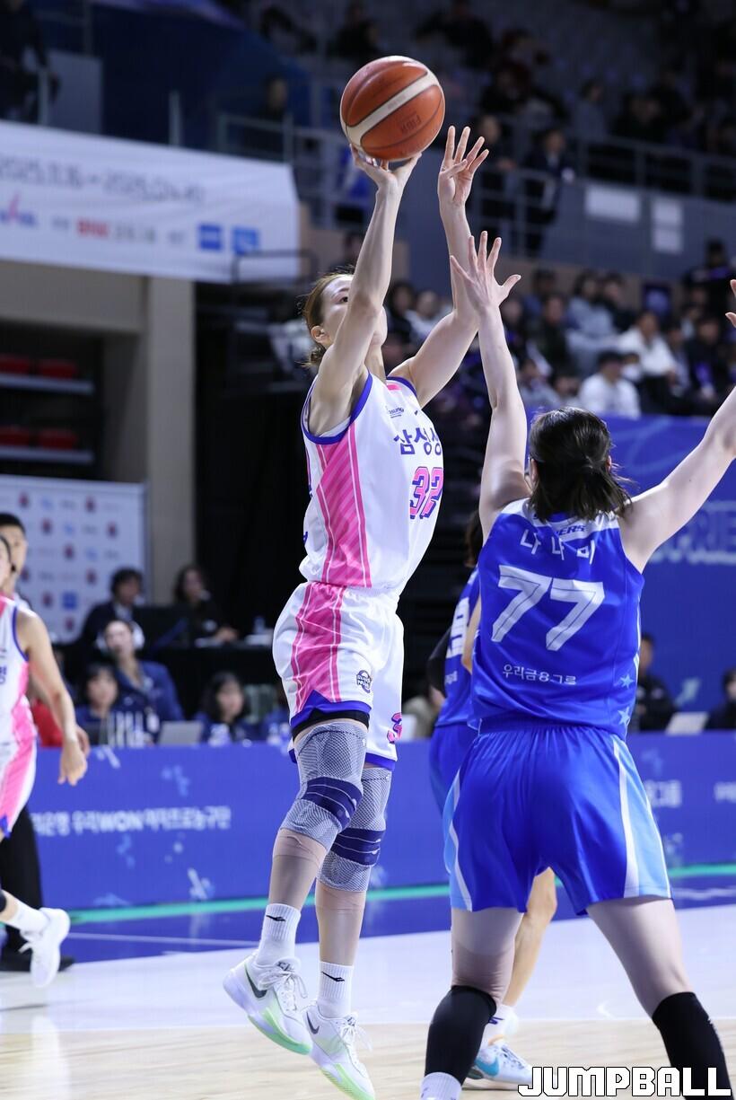 [점프볼=아산/김소희 인터넷기자] 용인 삼성생명은 22일 아산 이순신체육관에서 열린 BNK금융 2025~2026 여자프로농구 정규리그 아산 우리은행과의 경기에서 63-44로 승리했다.