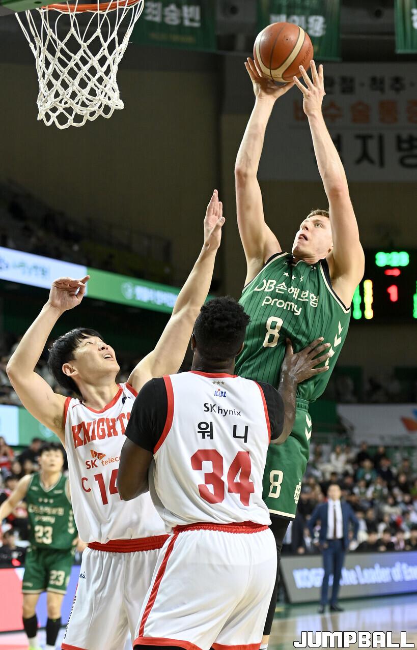 원주 DB는 15일 원주DB프로미아레나에서 열린 2025-2026 LG전자 프로농구 서울 SK와의 2라운드 맞대결에서 87-84로 승리했다.