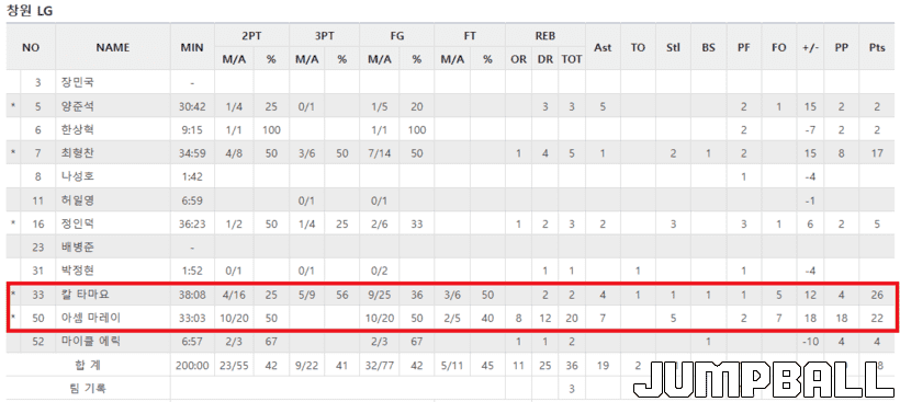 확실한 벤치 득점 에이스가 없는 LG다. ‘타마레이’ 득점이 평균 이상 나오지 않았을 때 힘든 경기했다는 걸 알 수 있는 대표적인 수치였다.