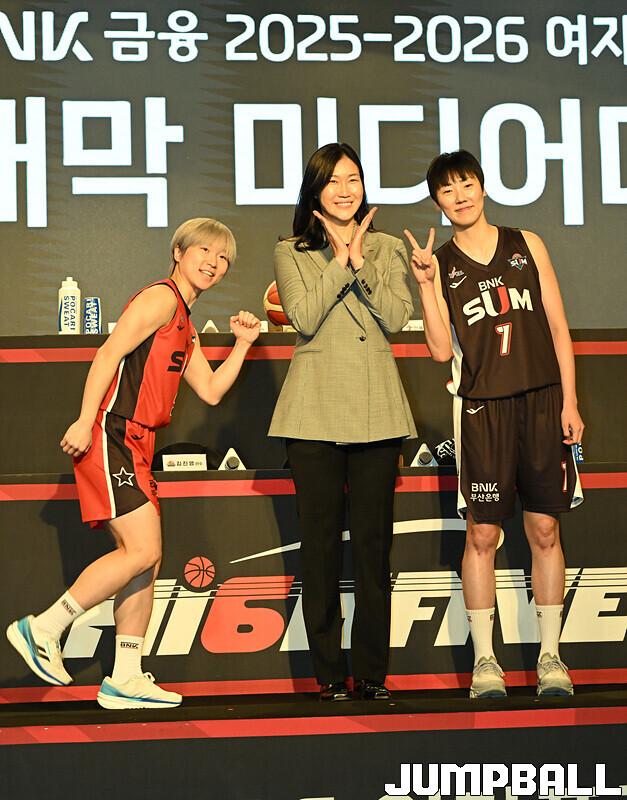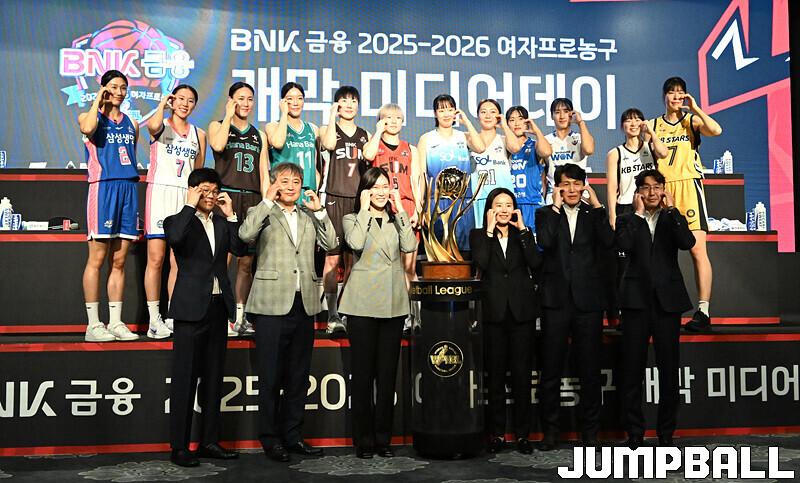 [점프볼=발산/문복주 기자] WKBL은 10일 메이필드 호텔 서울 메이필드 볼륨에서 BNK금융 2025~2026 여자프로농구 미디어데이를 개최했다. 6개 구단 사령탑과 각 구단을 대표하는 선수 2명씩 참가, 미디어데이를 빛냈다