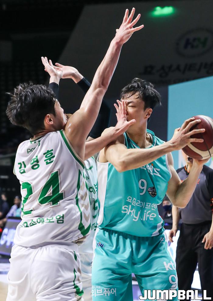 [점프볼=윤민호 기자]6일 부산 사직체육관에서 열린 2020-2021 현대모비스 프로농구 부산 KT와 원주의 경기