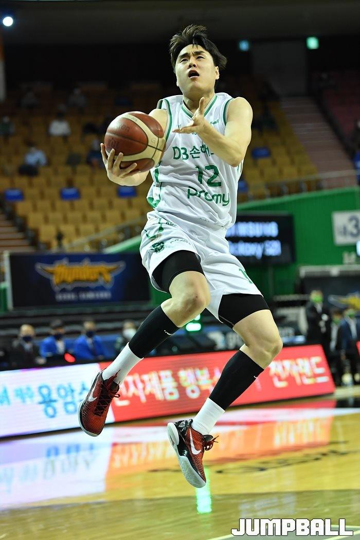 [점프볼=잠실/유용우 기자] 27일 잠실 실내체육관에서 열린 2020-2021 현대모비스 프로농구 서울 삼성과 원주 DB의 경기, DB 김훈이 속공 레이업을 올리고 있다.
