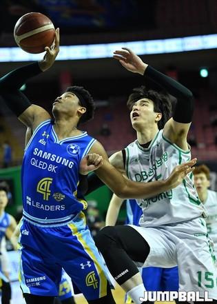 [점프볼=잠실/유용우 기자] 27일 잠실 실내체육관에서 열린 2020-2021 현대모비스 프로농구 서울 삼성과 원주 DB의 경기, 삼성 김현수가 리바운드를 잡고 있다.