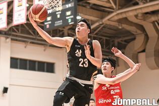 18일 이천 LG챔피언스파크에서 열린 2022-2023 KBL D리그 대구 한국가스공사와 울산 현대모비스의 경기, 한국가스공사 양준우가 리버스슛을 시도하고 있다.