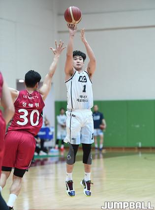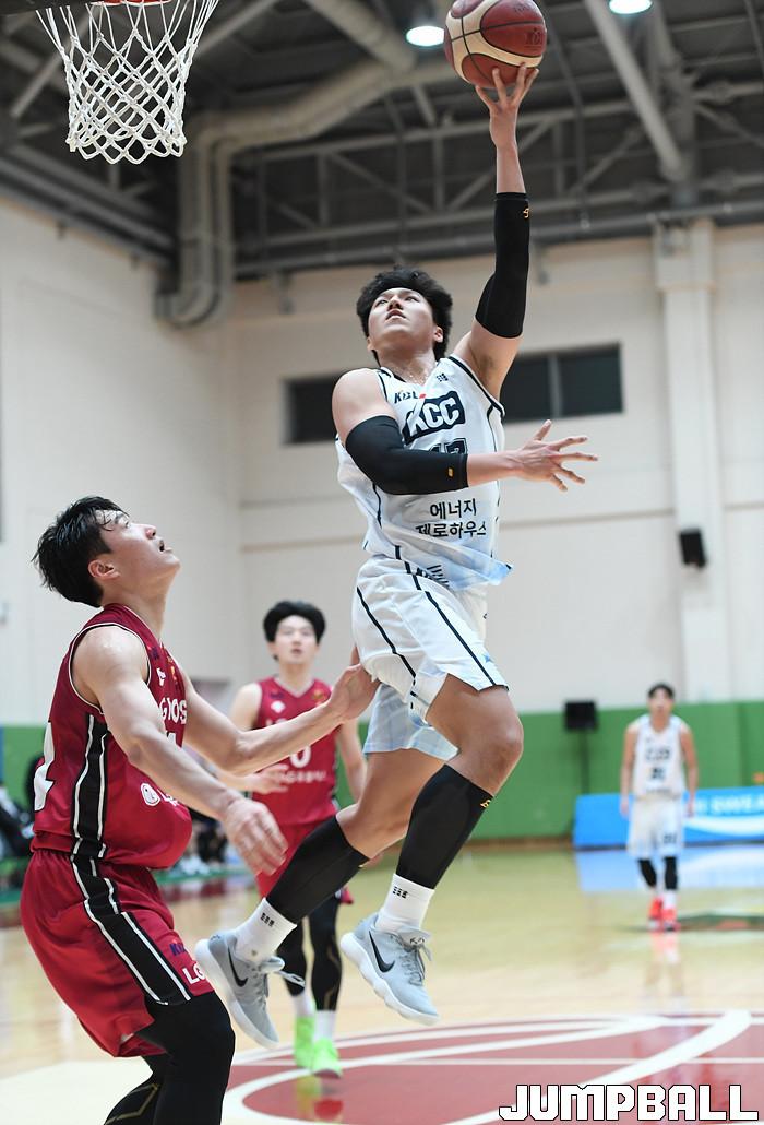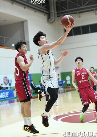 [점프볼=이천/문복주 기자] 26일 이천 LG챔피언스파크에서 열린 2020-2021 KBL D리그 2차대회 창원 LG와 전주 KCC의 경기, KCC 곽정훈이 골밑에서 수비를 제치고 슛을 시도하고 있다.