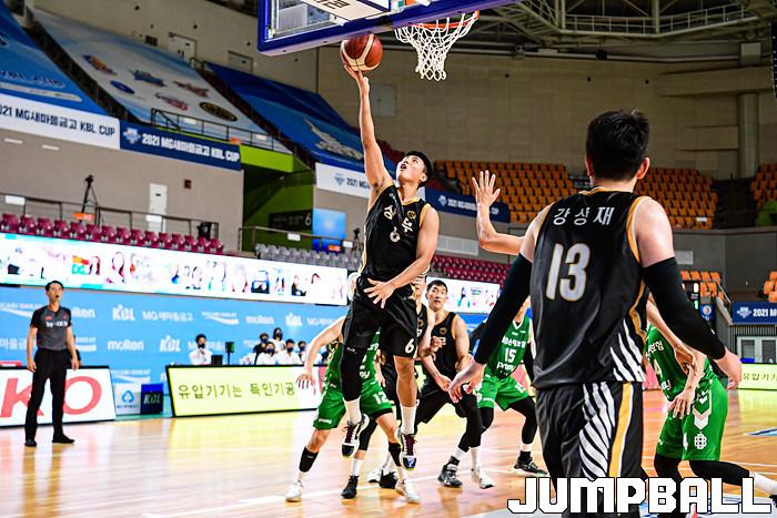 13일 경상북도 상주시 상주실내체육관에서 열린 2021 MG새마을금고 KBL컵 대회 원주 DB와 상무의 경기, 상무 박지훈이 레이업슛을 시도하고 있다.