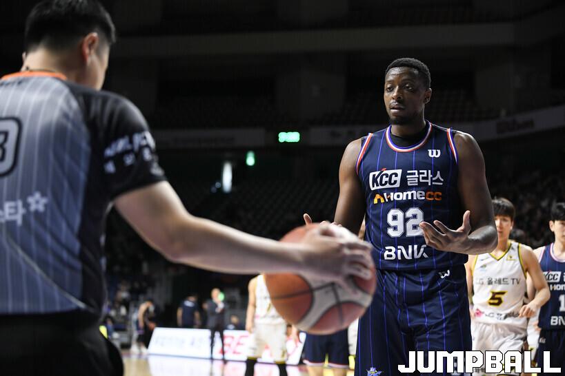 [점프볼=부산/홍성한 기자] 캐디 라렌(KCC)이 끝까지 경기를 소화하지 못했다.