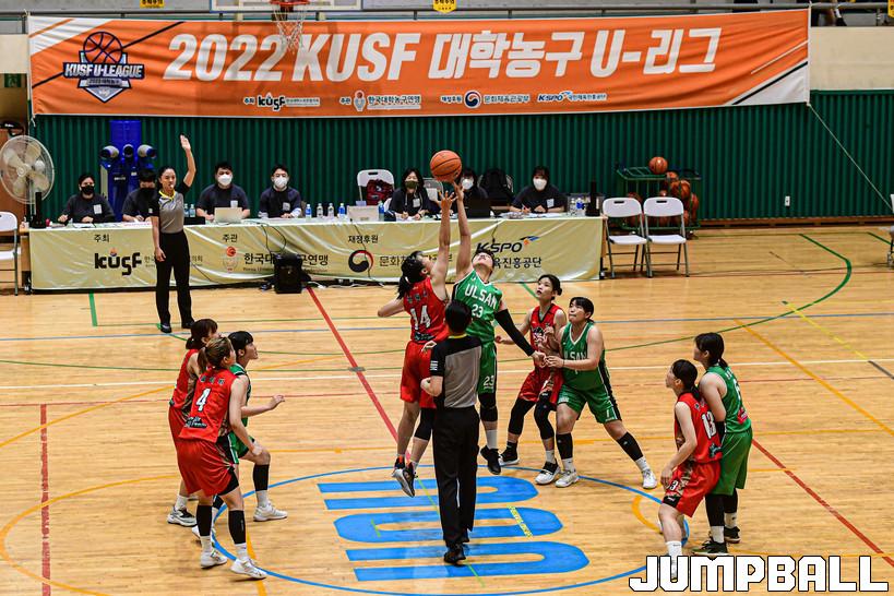 7일 울산대 체육관에서 열린 2022 KUSF 대학농구 U-리그 울산대와 광주대의 경기, 점프볼로 경기가 시작되었다.