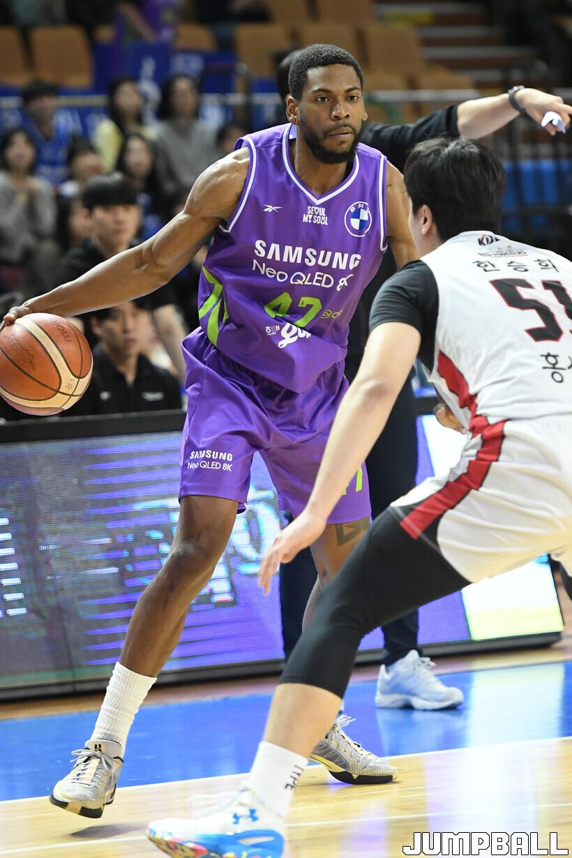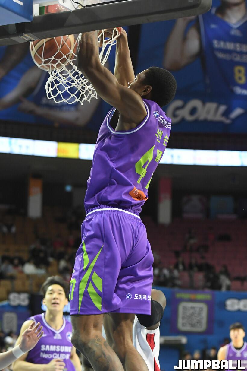 평균 10~15분을 뛰다가 직전 경기였던 26일 창원 LG와 경기에서 무려 35분 56초를 코트에 있었다. 이는 로빈슨 3세라 해도 어려웠다. 삼성 김효범 감독은 "경기 끝나고 거의 실신했다고 하더라(웃음). 아무것도 못 하고 몸 회복에만 집중했다"라고 설명했다.