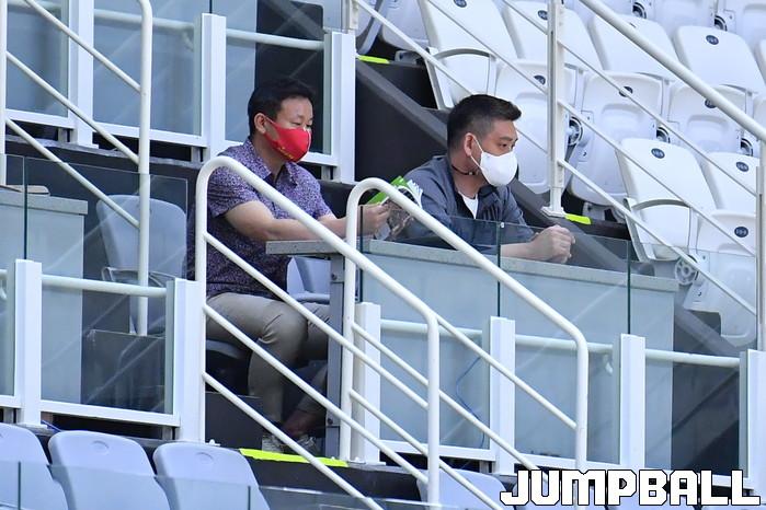 [점프볼=수원/홍기웅 기자] 5일 수원 서수원칠보체육관에서 열린 '2021 KUSF 대학농구 U-리그 3차대회' 동국대와 성균관대의 경기. LG 조성원 감독이 U리그 관전을 하고 있다.