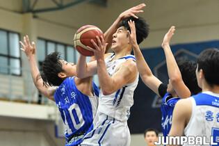 [점프볼=안성/유용우 기자] 20일 안성에 위치한 중앙대 다빈치캠퍼스 청룡체육관에서 열린 2024 KUSF 대학농구 U-리그 중앙대와 단국대의 경기, 중앙대 임동언이 수비를 뚫고 공격하고 있다.