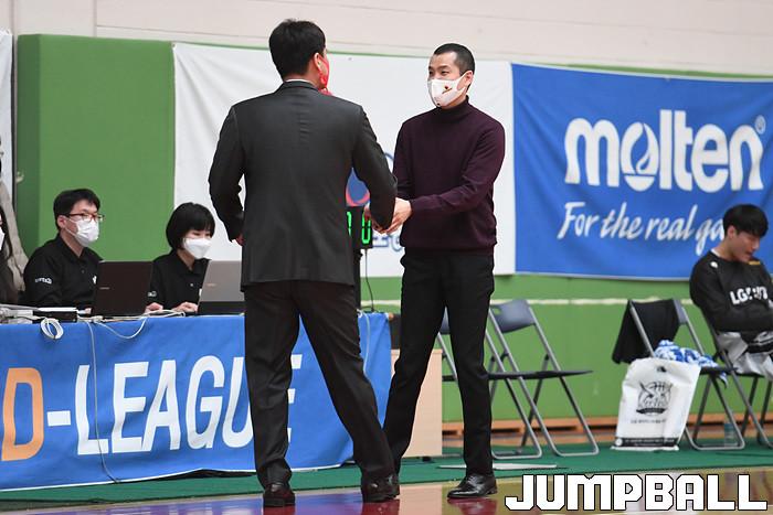 [점프볼=이천/박상혁 기자] 11일 이천 LG챔피언스파크에서 열린 2020-2021 현대모비스 프로농구 KBL 가리그 2차대회 서울 SK와 창원 LG의 준결승 경기, SK 허남영 코치와 LG 최승태 코치가 경기 종료 후 인사를 하고 있다.