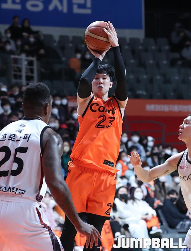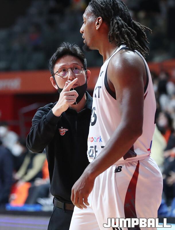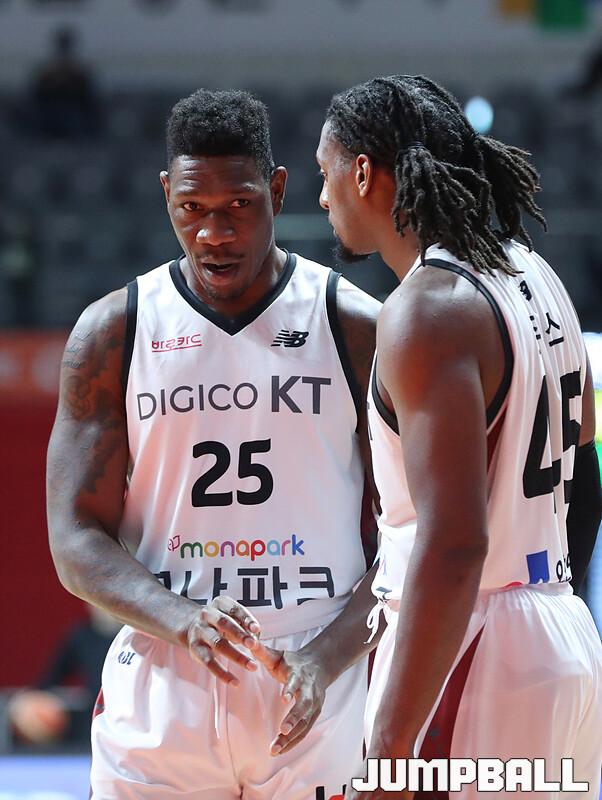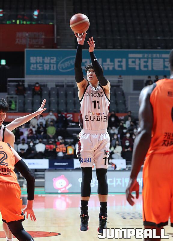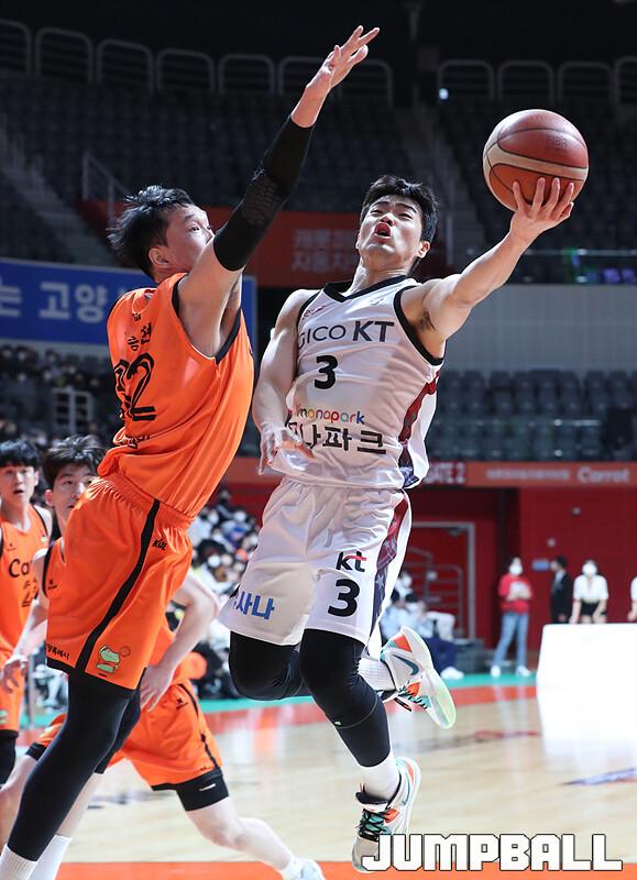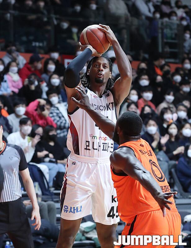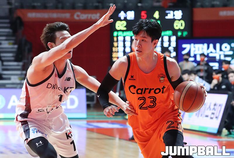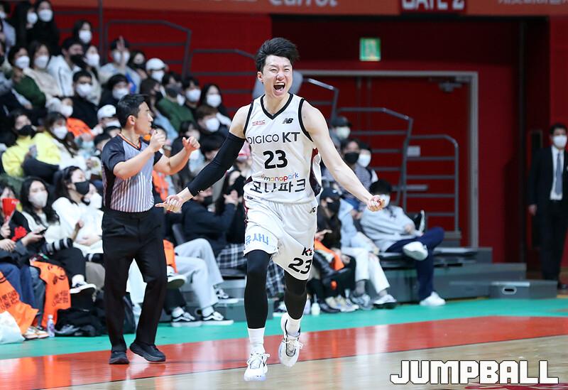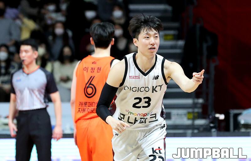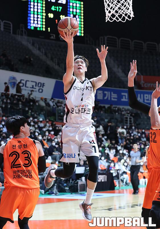 수원 KT는 1일 고양체육관에서 벌어진 '2022-2023 SKT 에이닷 프로농구' 정규리그 원정경기에서 고양 캐롯을 맞아 90-77의 승리를 거뒀다. 외인 교체 이후 4연승을 달린 KT는 새해 첫 경기도 승리로 장식하며 5연승 행진을 이어갔다.