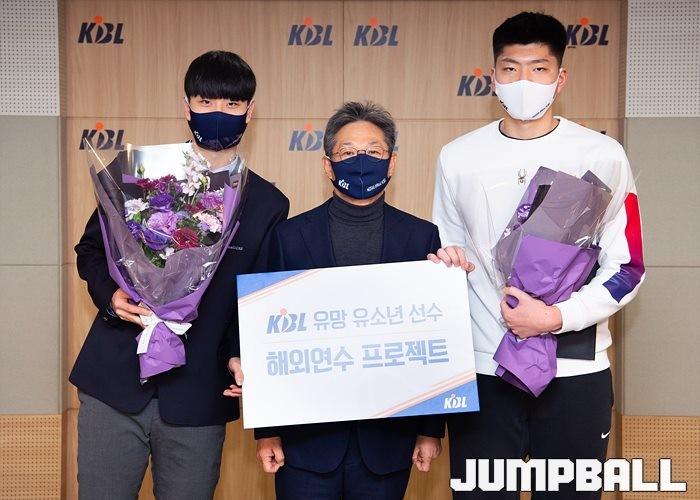 [JB포토] KBL, 유망 유소년 해외 육성 프로젝트에 선발된 이주영과 구민교