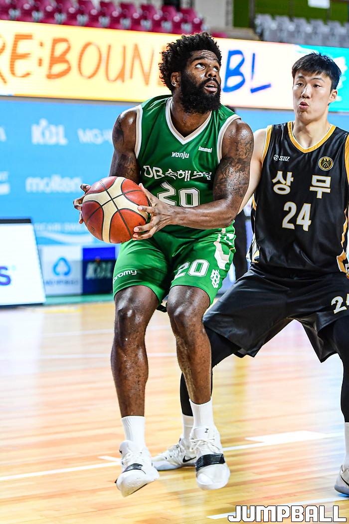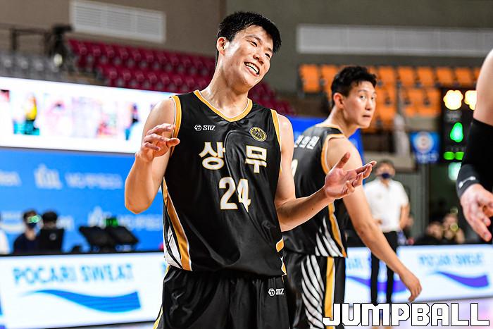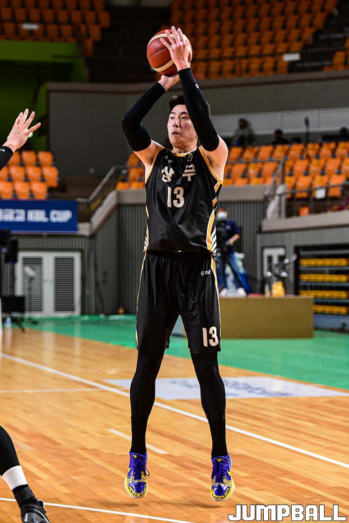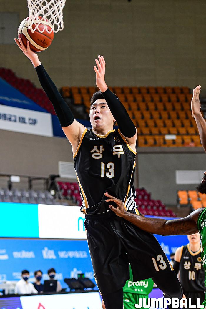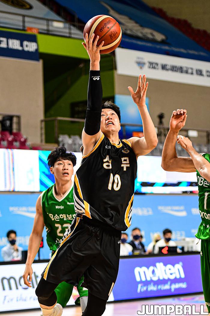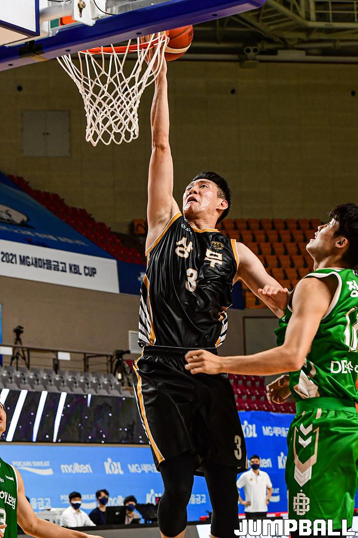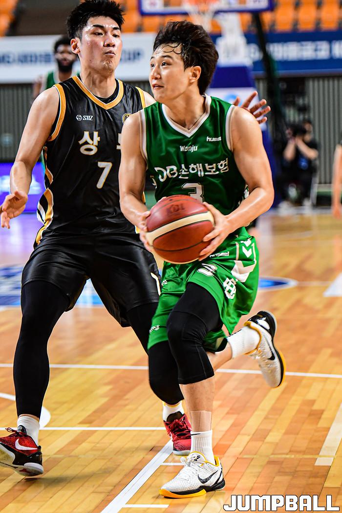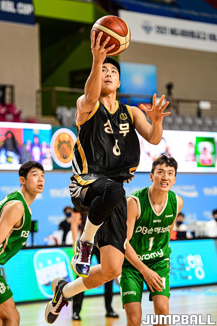13일 경상북도 상주시 상주실내체육관에서 열린 2021 MG새마을금고 KBL컵 대회 원주 DB와 상무의 경기, DB가 상무에 86-84로 승리했다. DB와 상무 경기 화보.