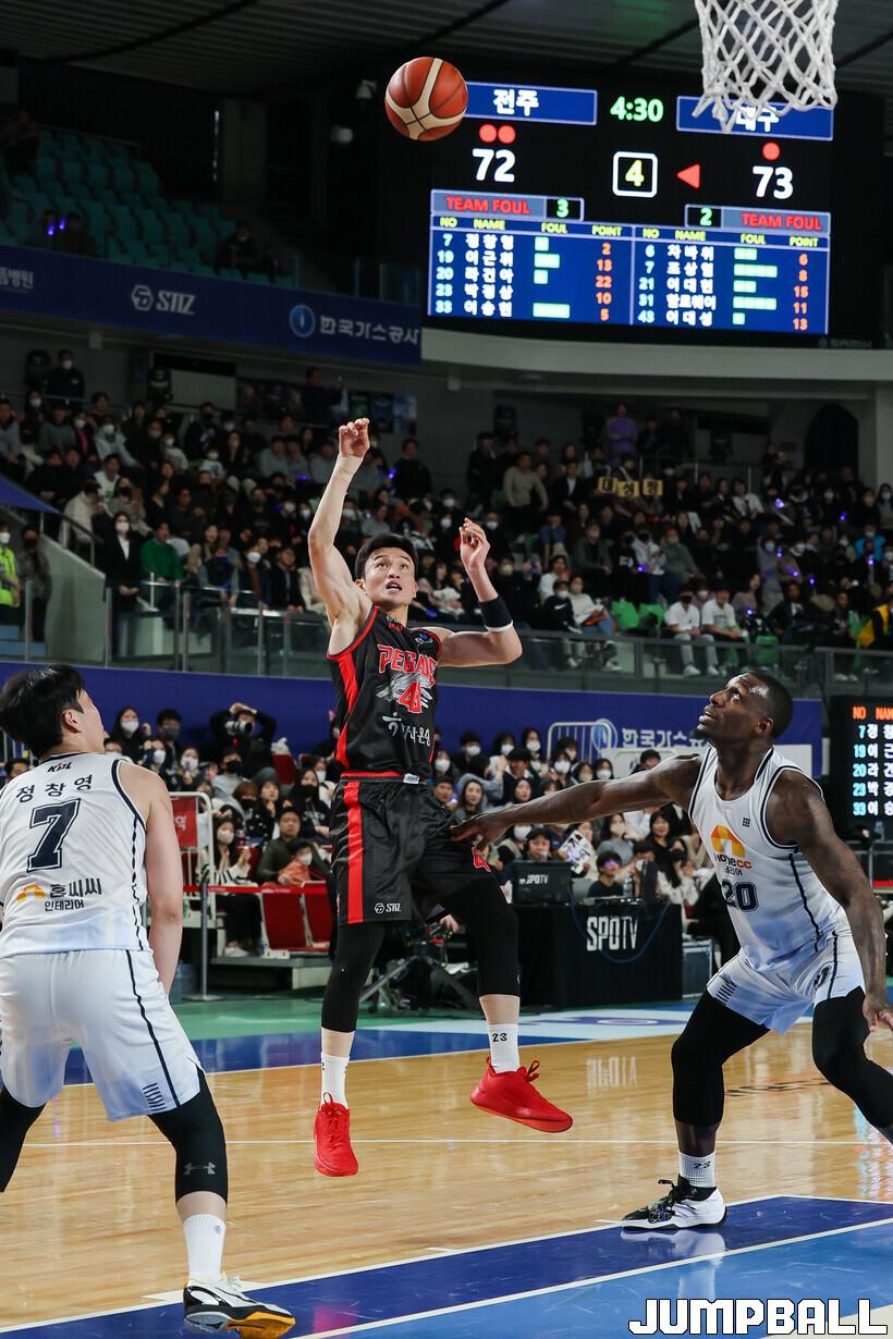 [점프볼=윤민호 기자] 대구 한국가스공사는 19일 대구체육관에서 열린 2022~2023 SKT 에이닷 프로농구 전주 KCC와 홈 경기에서 81-79로 이겼다.