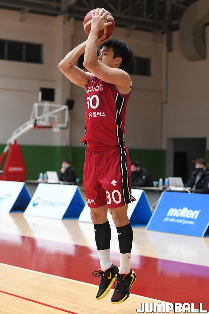[점프볼=이천/박상혁 기자] 2일 이천 LG챔피언스파크에서 열린 2020-2021 KBL D리그 2차대회 LG와 현대모비스의 경기, LG 정해원이 3점슛을 시도하고 있다.