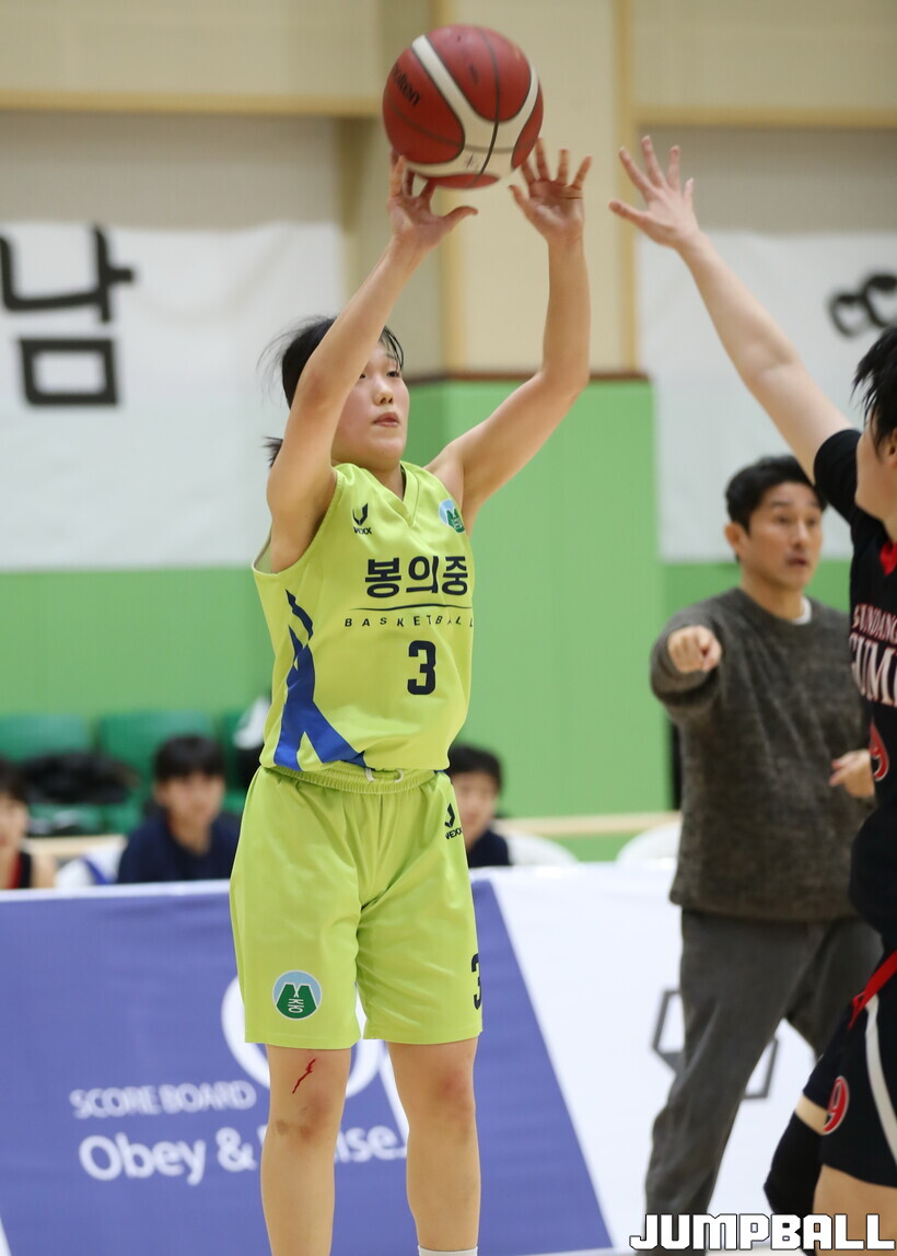 18일 전남 해남 구교체육관에서 열린 제63회 춘계전국남녀 중고농구연맹전 여중부 예선전, 봉의중이 시종일관 우위를 점한 끝에 61-46으로 분당 구미중을 꺾고 첫 승을 신고 했다.