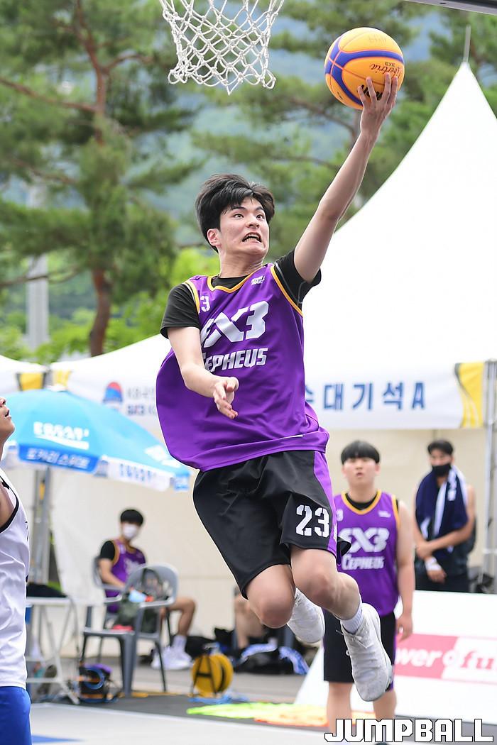 [점프볼=양구/박상혁 기자] 19일과 20일 양구청춘체육관 앞 특설코트에서 KB국민은행 LIIV m 3X3 코리아투어 IN 양구 대회가 열렸다. 고등부 군포 케페우스가 레이업슛을 시도하고 있다.
