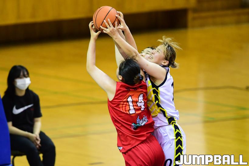 23일 단국대 체육관에서 열린 2022 KUSF 대학농구 U-리그 단국대와 수원대의 경기, 단국대 박성은과 수원대 이나라가 리바운드 다툼을 하고 있다.